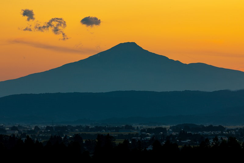 北に「出羽富士」と呼ばれる鳥海山、東に出羽三山の主峰である月山。