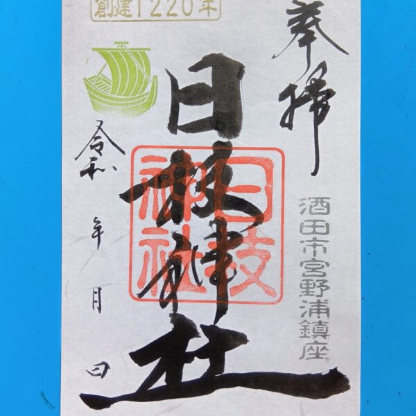 御朱印は原則として参拝者にお分けするものです。電話でのご連絡により、社頭で御朱印帳に押印することができます。押印済みの書付紙であれば遠方の方への発送にも応じますが、祭礼日にあわせた参拝日を記入することになります。お札との同時購入をおすすめします。