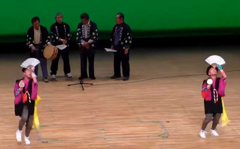 宮野浦の大黒舞は、お正月の三が日、2名の男子の舞手が、社頭で参拝者に披露するものです。獅子舞の後に、頭巾に紋付ともんぺ、そして草履をまとい、太鼓と唄に合わせ演じられます。 頬紅をつけているので、とてもかわいらしい大黒様です。参拝者は、大黒様にご祝儀を贈って励まし、子供達の見事な舞と謡に新しい年のはじまりを祝うのです。